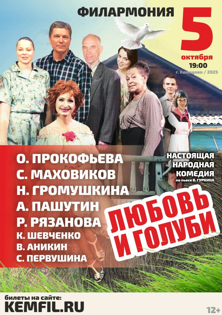 Всенародно любимая комедия и всенародно любимые актеры - в спектакле по пьесе В. Гуркина «Любовь и голуби».